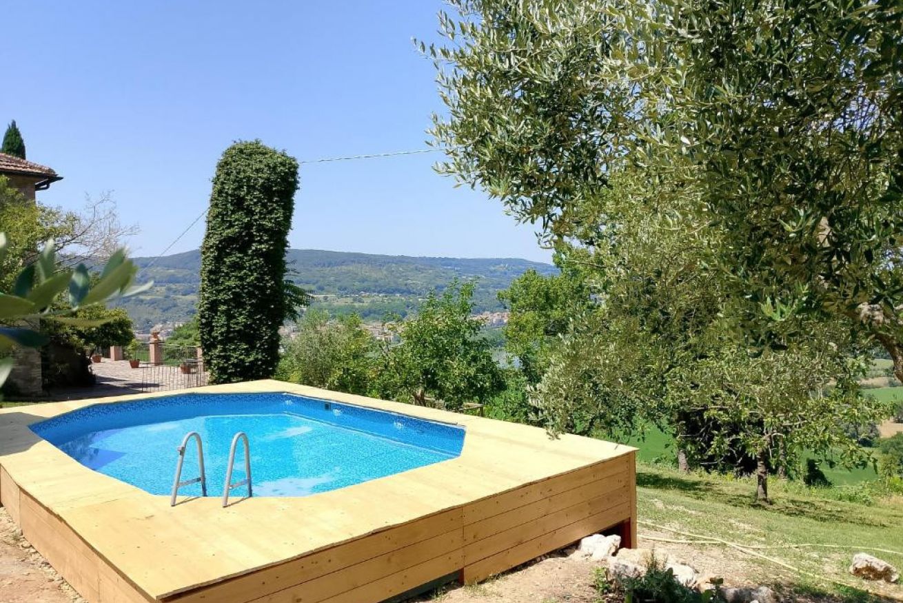 Il casale è completamente immerso nel verde e si raggiunge attraversando un suggestivo bosco di querce e lecci, regalando fin dall’arrivo una sensazione di pace e isolamento. Dalla terrazza panoramica si gode di una vista mozzafiato sul fiume Nera, sulla sua confluenza con il Tevere, su Orte e Orte Scalo, oltre a un ampio panorama naturale.
