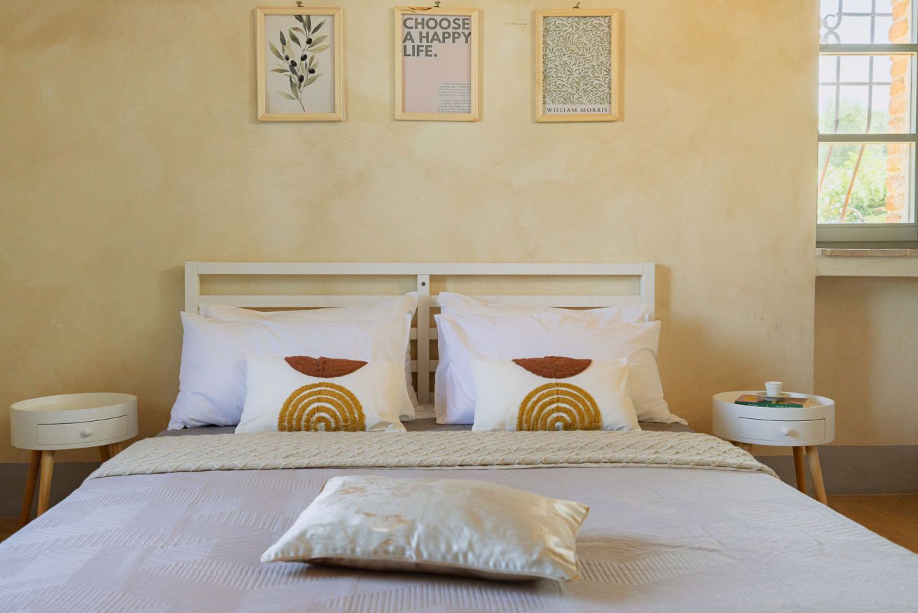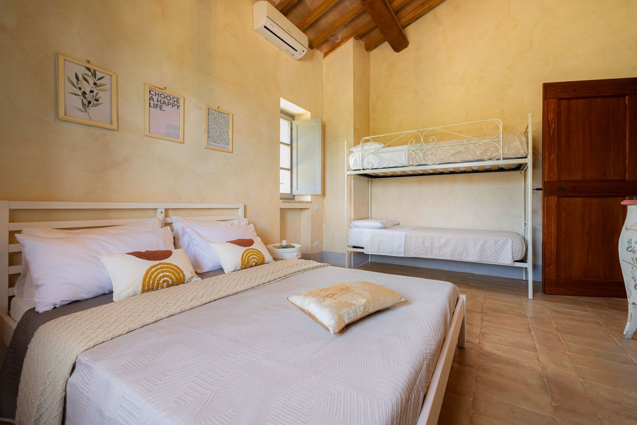 La villa con ampio spazio esterno offre internamente 3 camere da letto al piano superiore, una stanza doppia con bagno interno, una stanza soppalcata con bagno interno, con letto singolo sotto e letto matrimoniale sul soppalco, i infine una stanza quadrupla con un letto a castello e un letto matrimoniale , sempre con bagno interno, infine piano terra una stanza quadruple con letto a castello , un letto matrimoniale e adiacente un grande salotto con cucina e bagno di servizio, oltre una stanza lavanderia.