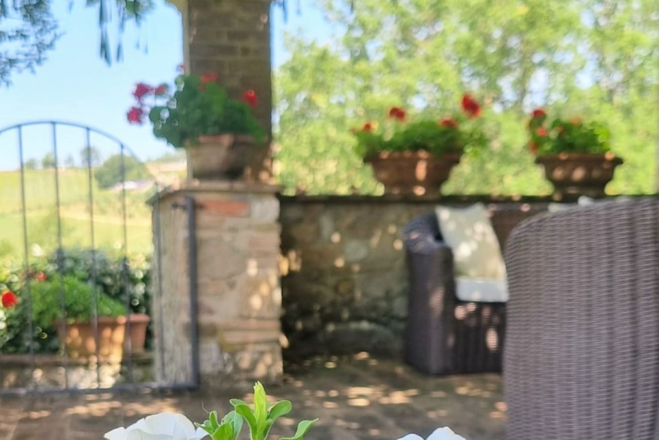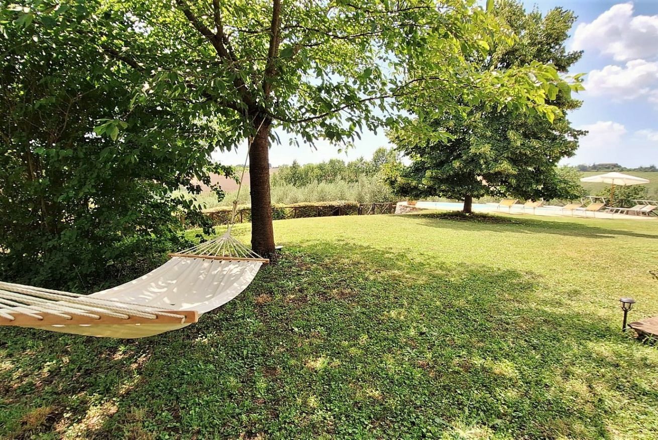 L'intero casale è circondato dalla natura ed il giardino con piscina, indispensabile per rinfrescare le giornate estive, si affaccia all'oliveto che delimita il perimetro della proprietà.