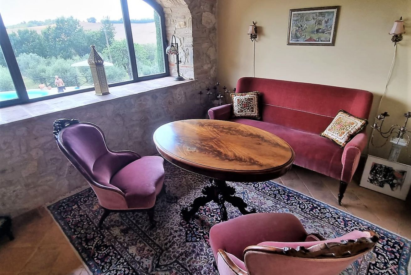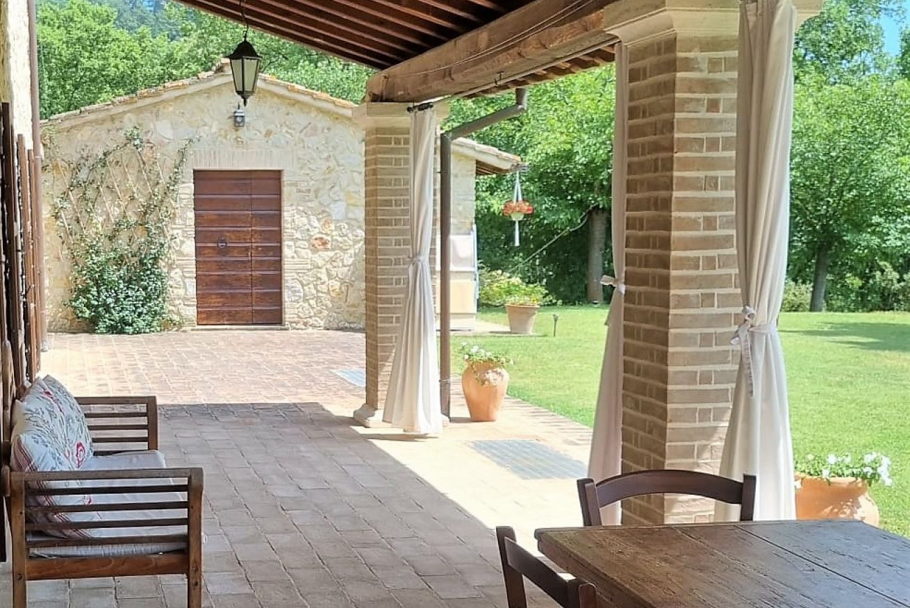 Il casale vi accoglierà in un' atmosfera tra il rustico ed il moderno. La struttura, edificata negli ultimi 10 anni, si presenta in pieno rigore stilistico con le caratteritiche estetiche degli antichi casolari umbri: muratura in pietra a vista, pavimentazioni in cotto esterne ed interne al piano terra e in doghe di noce al piano superiore, voltine in cotto contraddistinguono il soffitto dell'intero piano terra mentre travi, travetti e pianelle quelli a falda del piano superiore. L'arredo svedese fine '700 dona agli spazi interni eleganza e sobrietà.