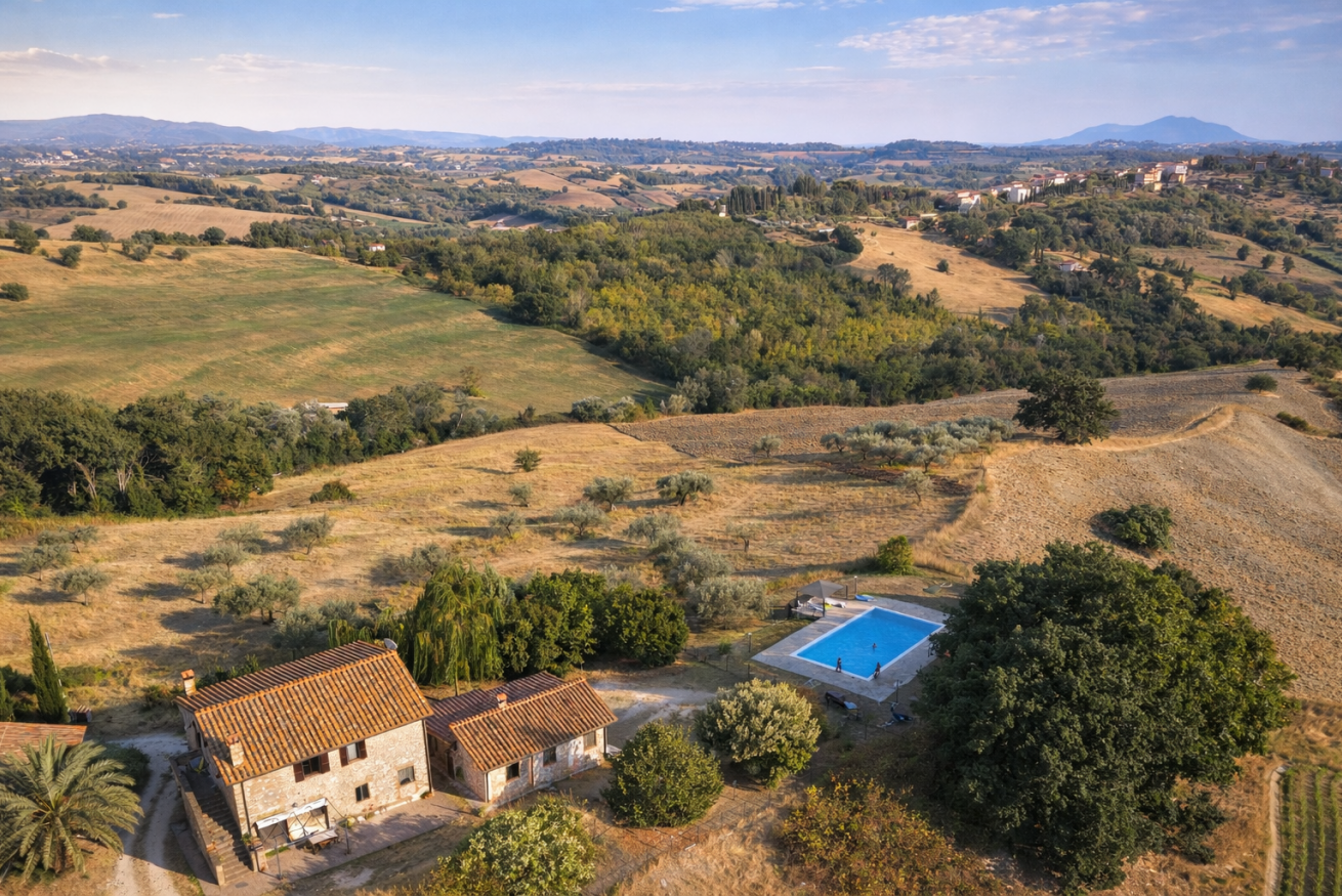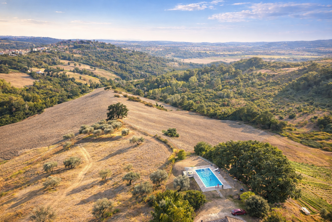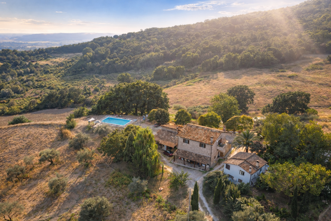 Collefiorito regala scorci unici all'orizzonte, la panoramica piscina guarda verso il paese e la vastità della valle del fiume tevere.