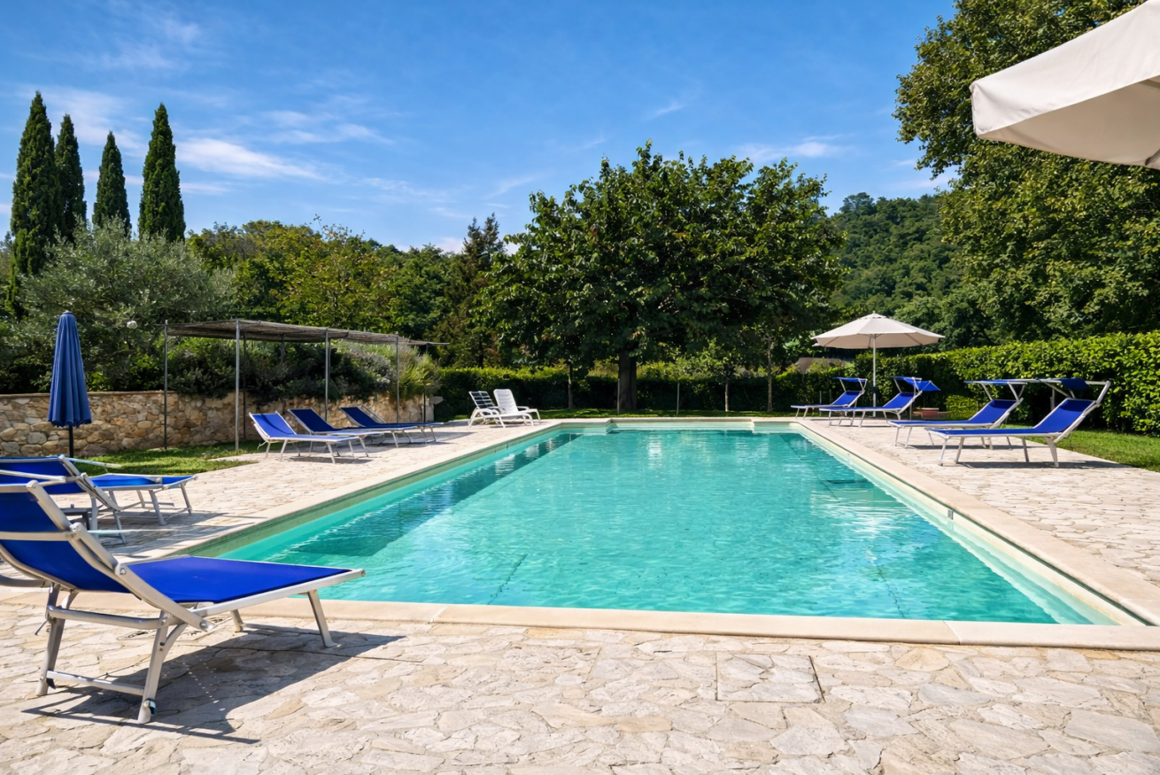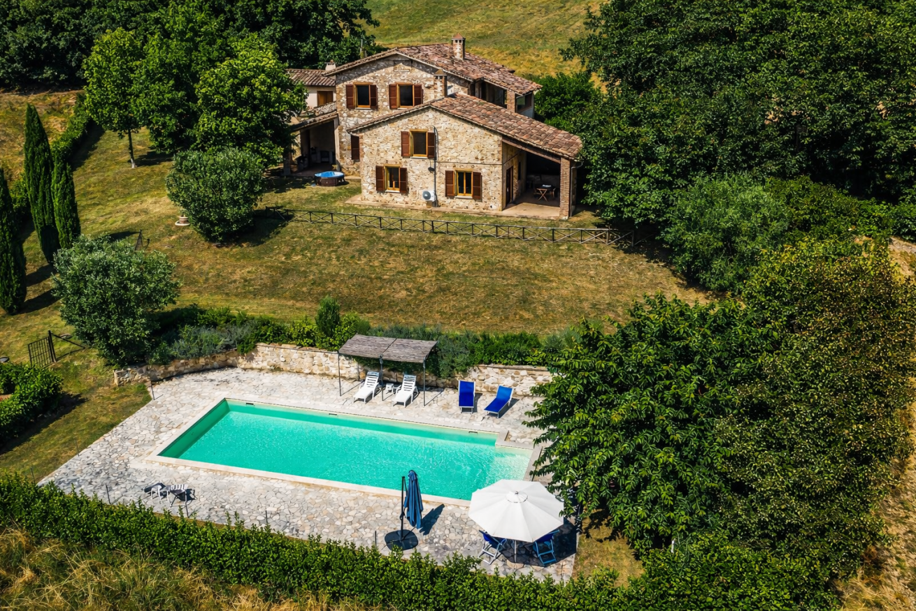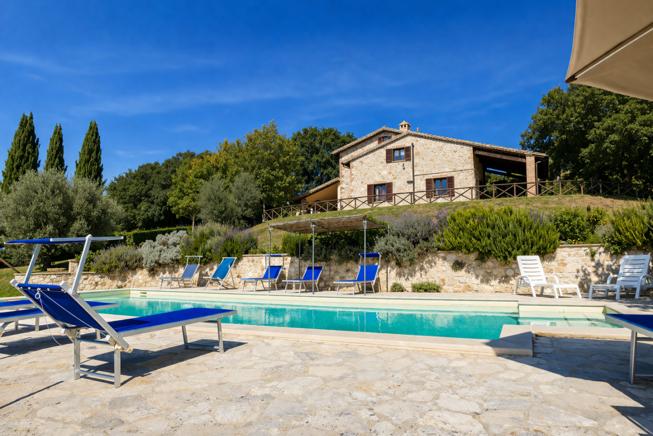 La "dolce godera" è un'incantevole villa indipendente con piscina privata incastonata nelle colline verdi dell'Umbria meridionale, vicino il paese di Lugnano in teverina.