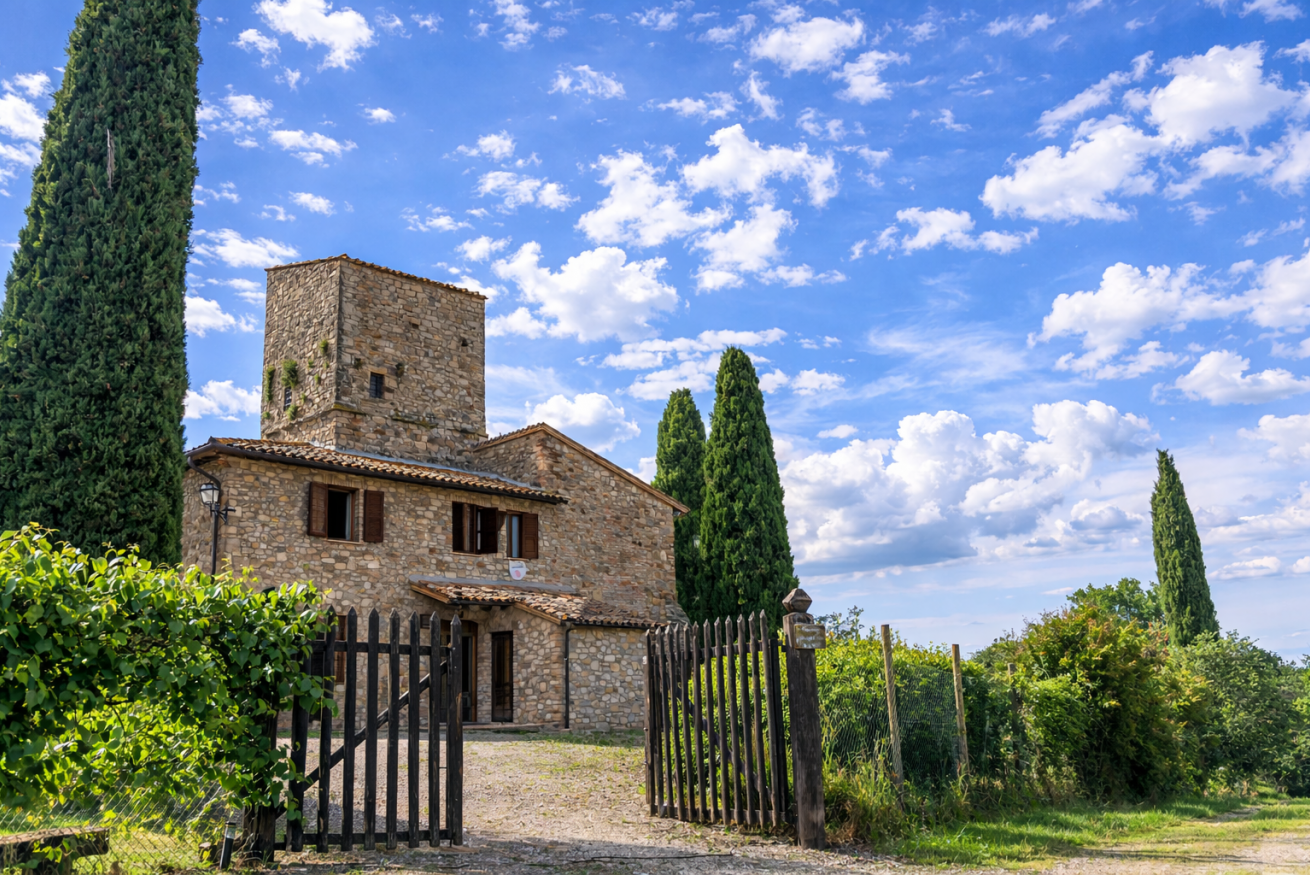 Vivi il meglio della storia e del comfort umbro in due case adiacenti ( affittate ad un unico gruppo)situate in una splendida tenuta paesaggistica. L'originale torre di avvistamento in pietra del 15 ° secolo è stata restaurata con cura e mescolata con una villa moderna piena di luce, il tutto a soli 10 minuti di auto dalla città collinare di Todi. Che tu ti stia rilassando nella storica torre di avvistamento, nuotando nella tua piscina privata di 12 × 6 metri o guardando il tramonto sui dolci uliveti, Torre Angelina offre una fuga indimenticabile.