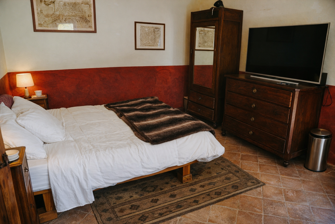 Con la piscina privata, perfetta per rinfrescarsi nelle giornate estive e godere della quiete della natura. Dal giardino si apre una vista panoramica unica sulla valle: potrai rilassarti all’aperto mentre osservi il fiume Tevere scorrere tra dolci colline, un panorama che rende l’atmosfera di Torreluca davvero magica.
