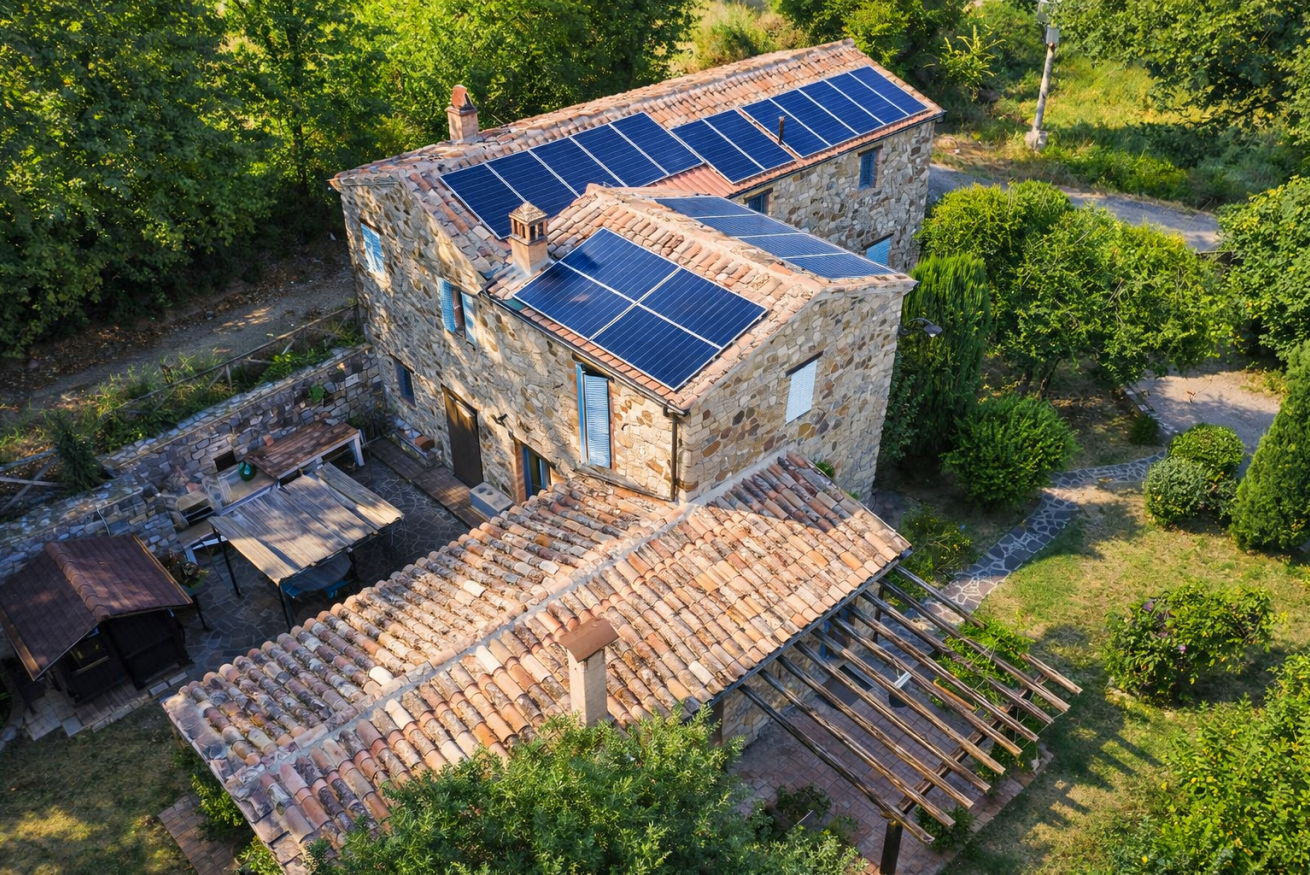 Il casale, completamente in pietra, conserva il fascino rustico della tradizione umbra ed è composto da: