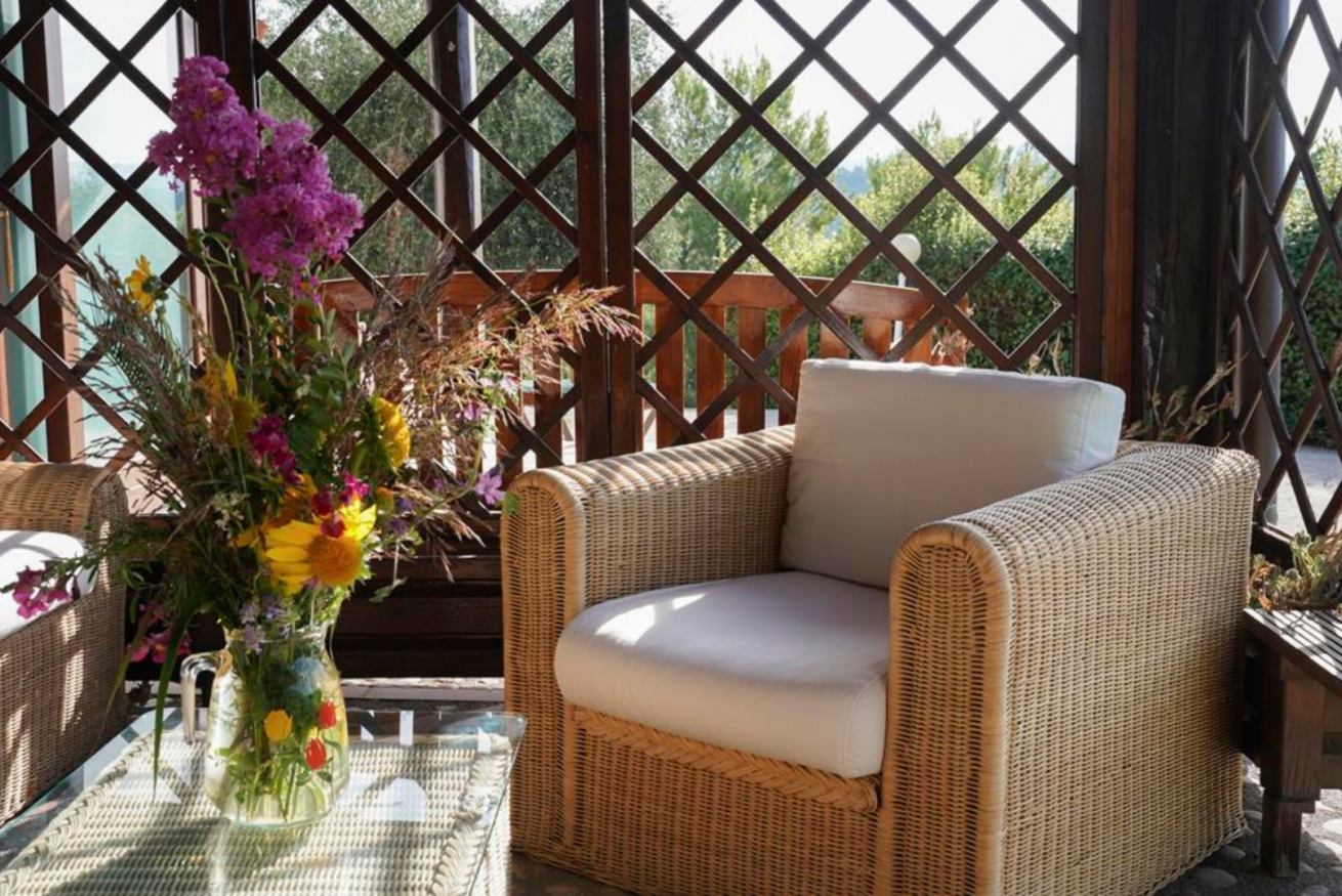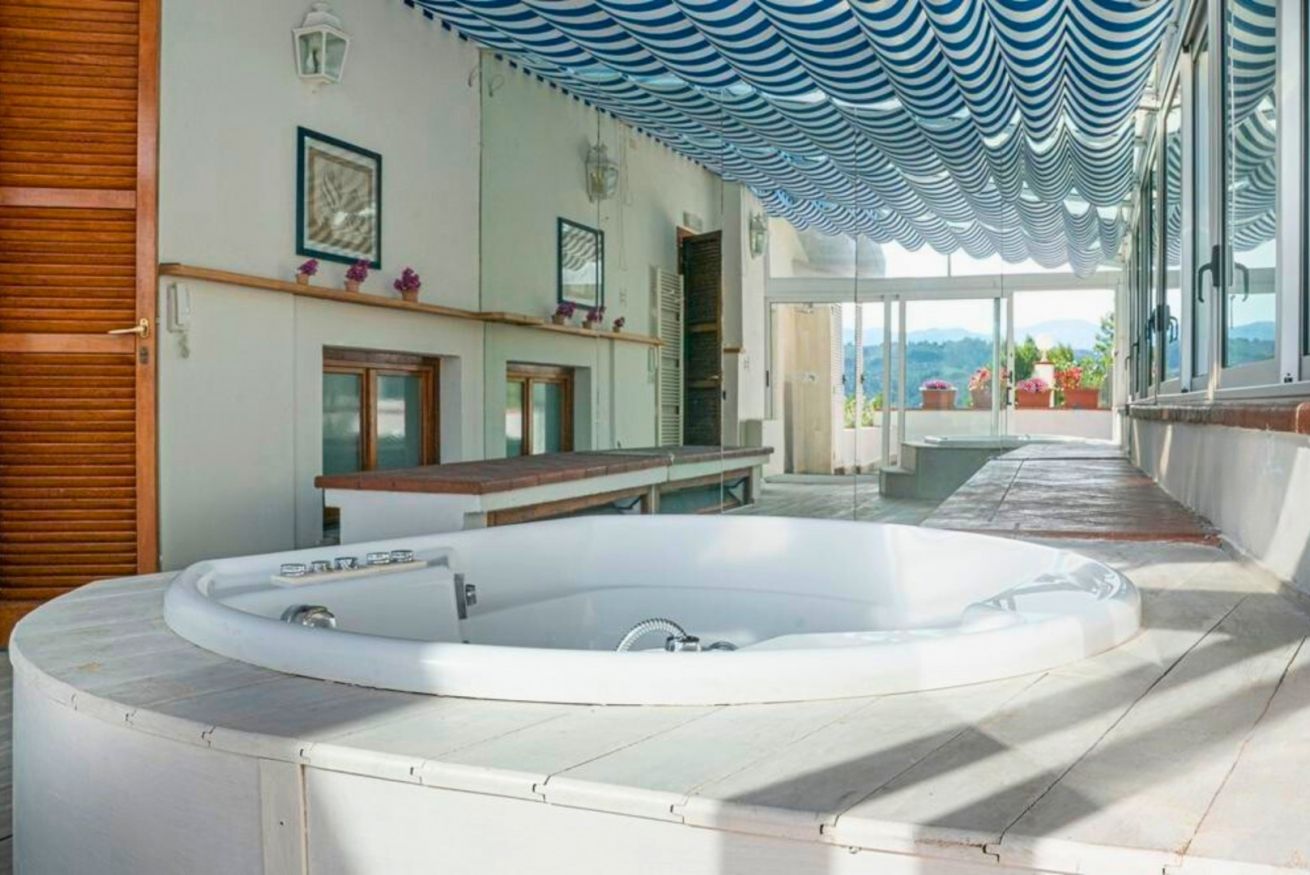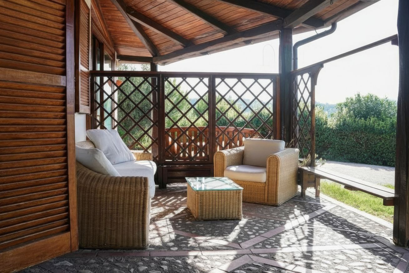La veranda: Un’oasi ombreggiata con jacuzzi privata per il massimo relax.