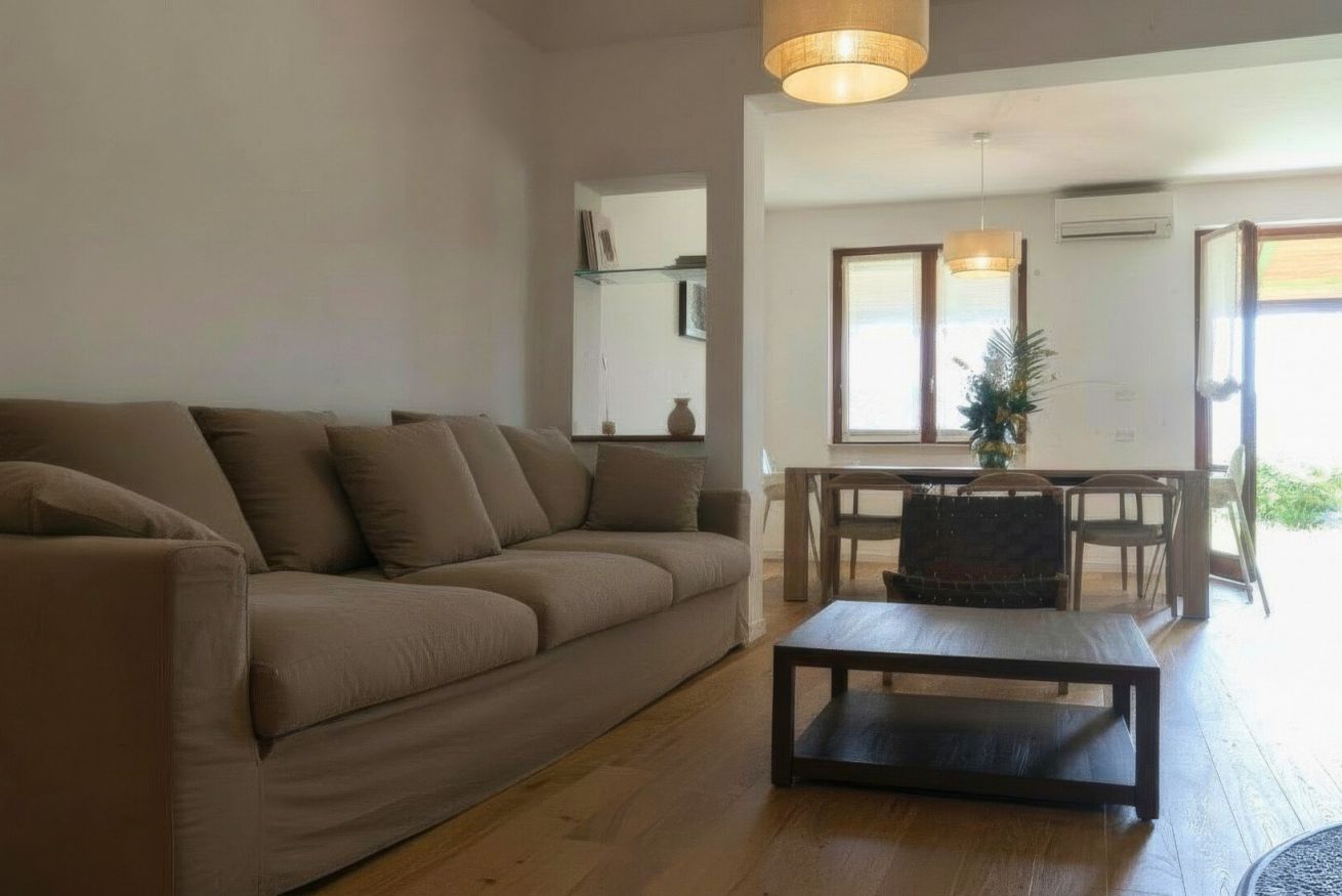 Immersa tra le morbide colline verdi appena fuori Terni, Villa Elena è una casa di campagna restaurata che unisce materiali naturali, eleganza discreta e comfort contemporaneo. L’abitazione si sviluppa su tre livelli, e ogni ambiente è progettato con grande attenzione alla luce, alle texture e al paesaggio circostante.