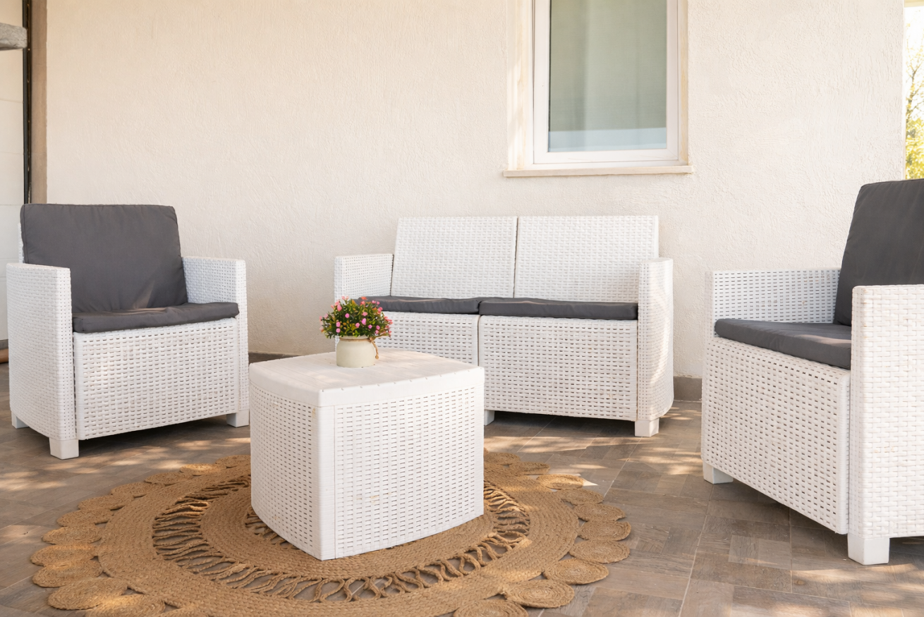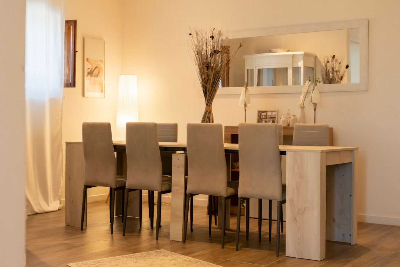 La casa è luminosa e accogliente, arredata con gusto in stile moderno e mediterraneo. Gli spazi esterni sono il vero punto di forza: ampi, curati e pensati per vivere ogni momento della giornata all’aperto.