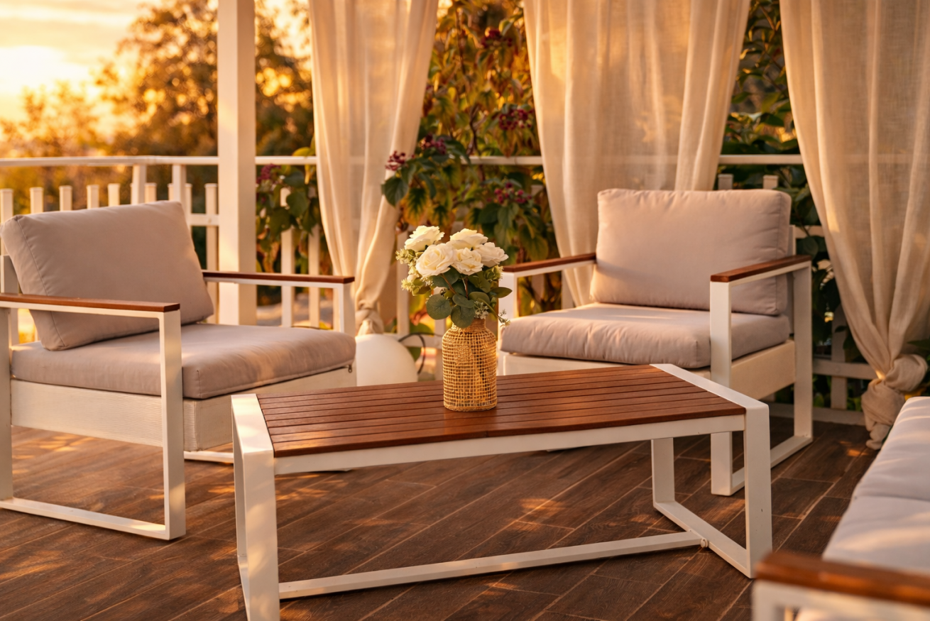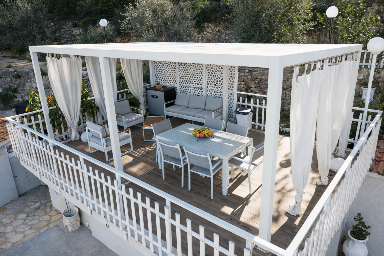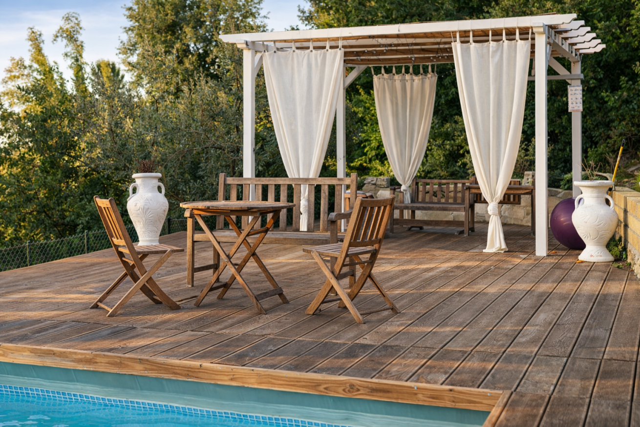 Pergolati eleganti con tende leggere per momenti di relax all’ombra