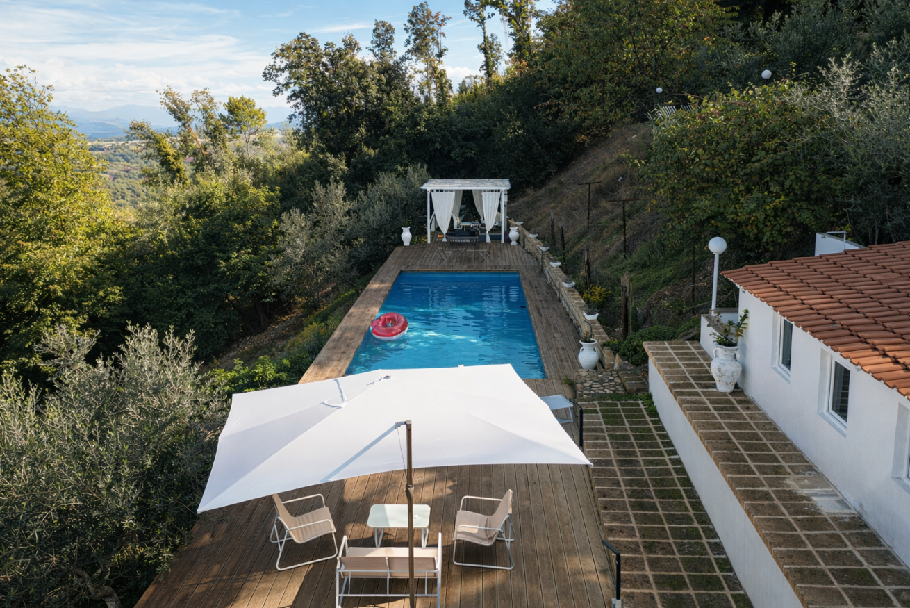 Nonostante la totale privacy, la villa è a breve distanza da Narni e ben collegata a Terni, rendendola un’ottima base per esplorare borghi, natura e percorsi enogastronomici della zona.