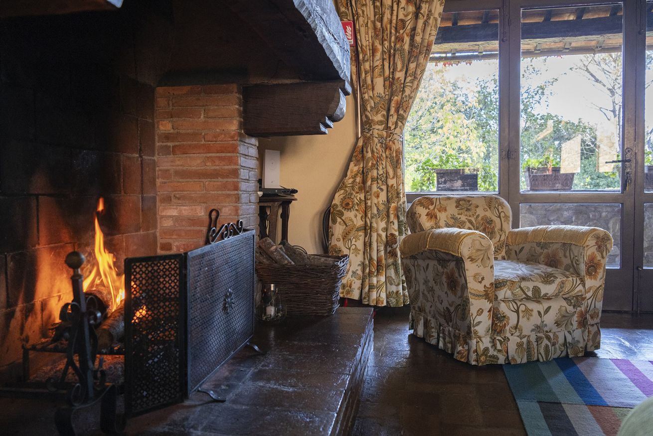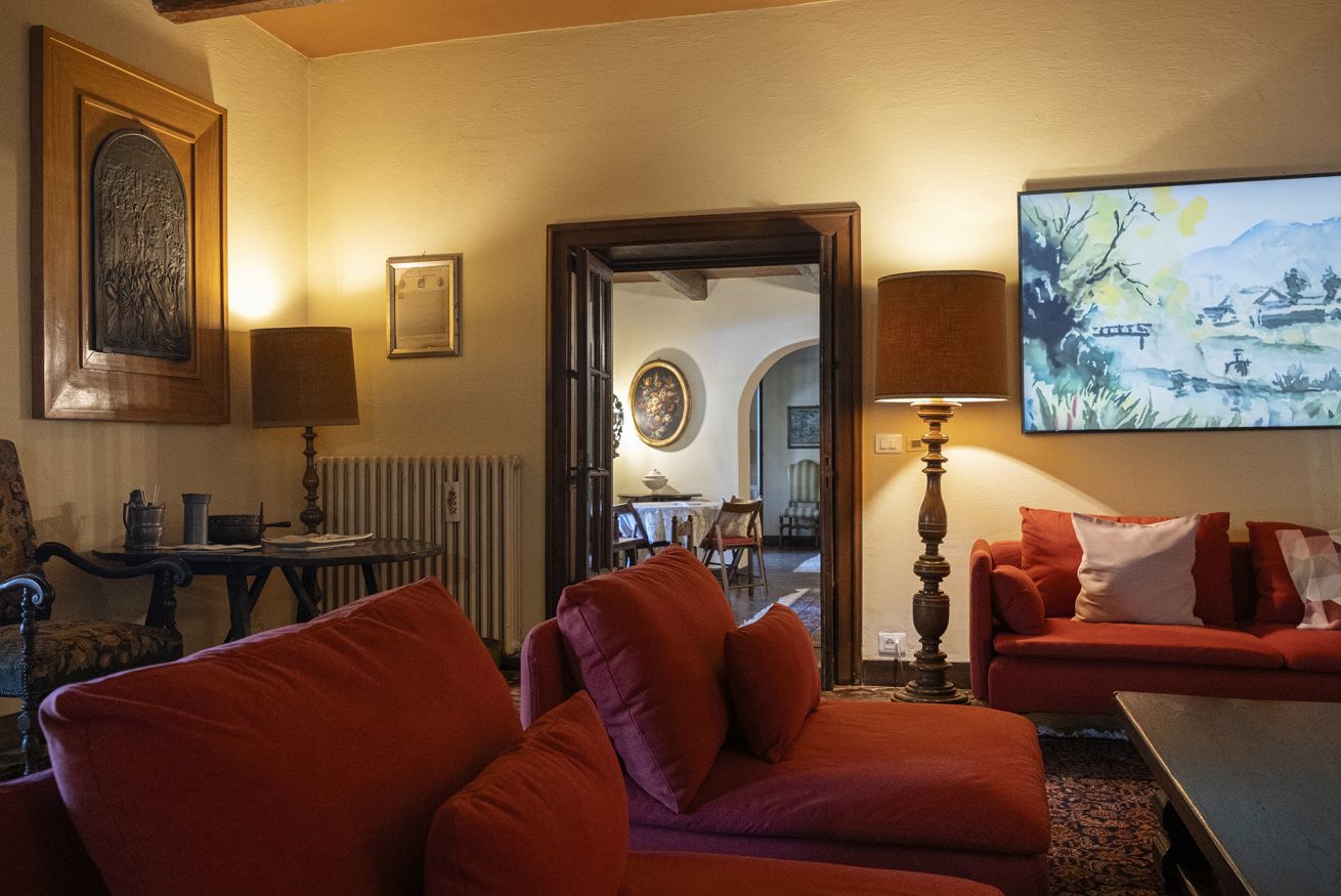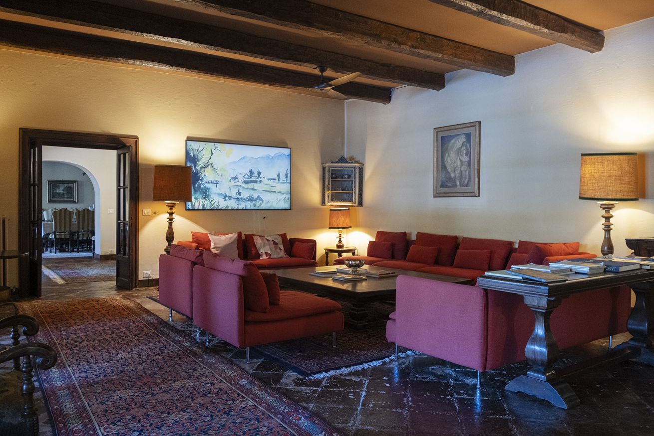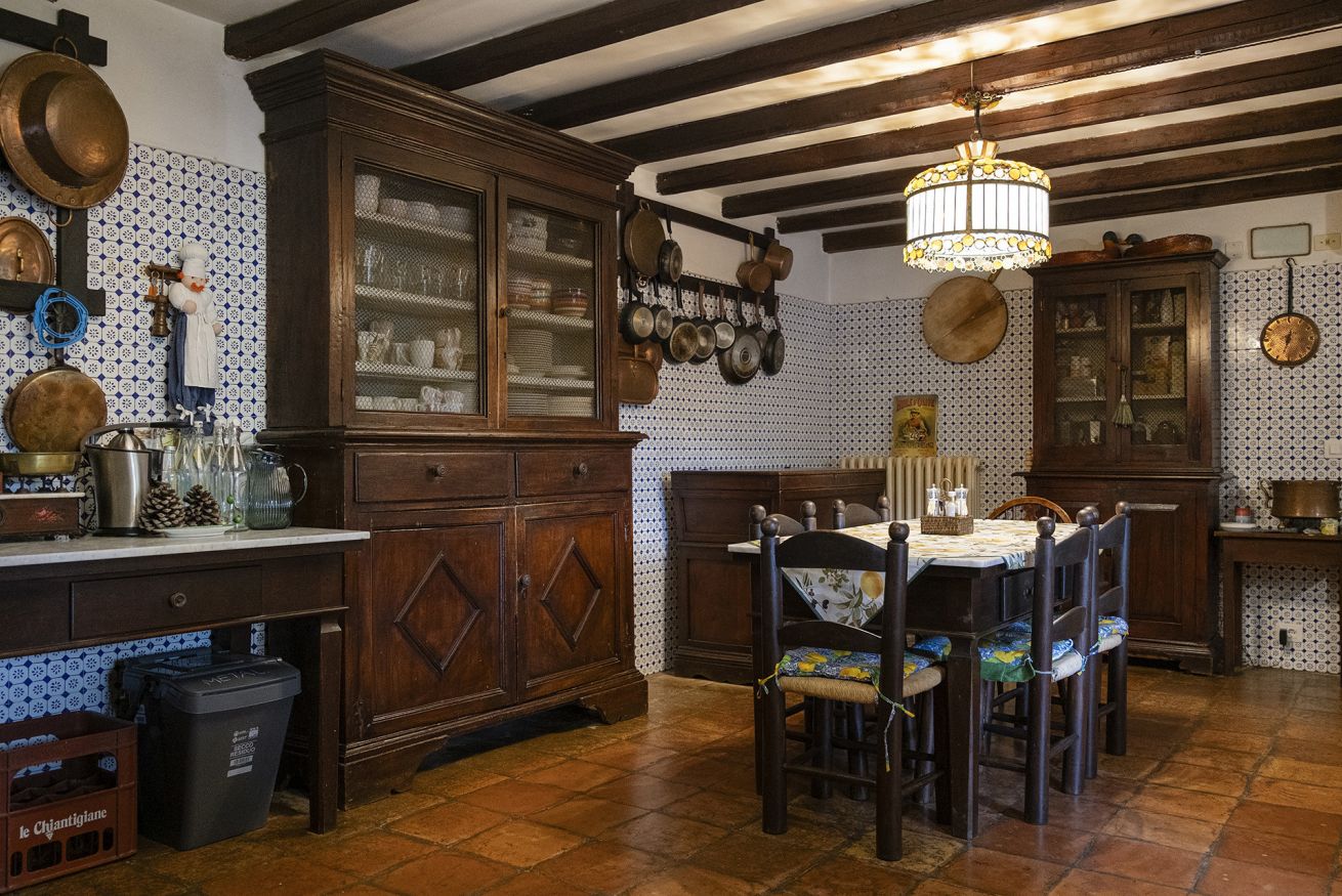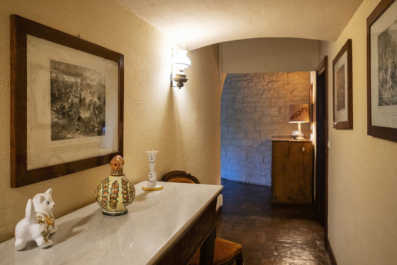 Nel corpo principale storico, al piano terra si sviluppa la luminosa zona giorno, con cucina attrezzata, doppio salone con camino e pianoforte, ideale per momenti di relax e convivialità. Dal salone si accede direttamente al portico, che conduce alla piscina, cuore della vita all’aperto.