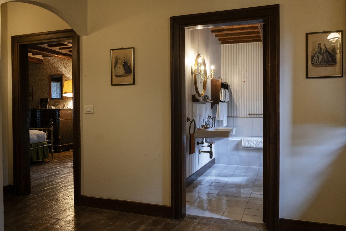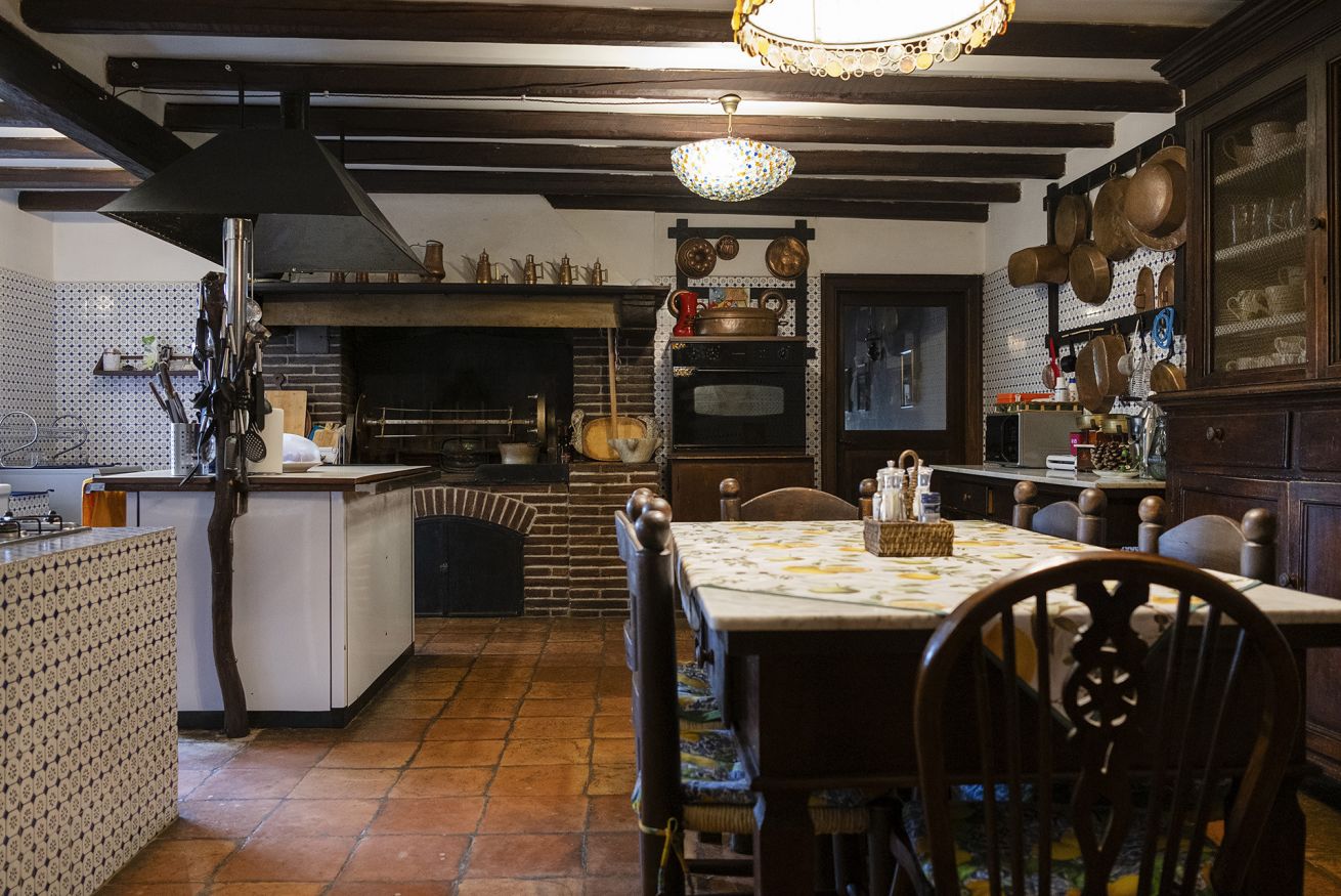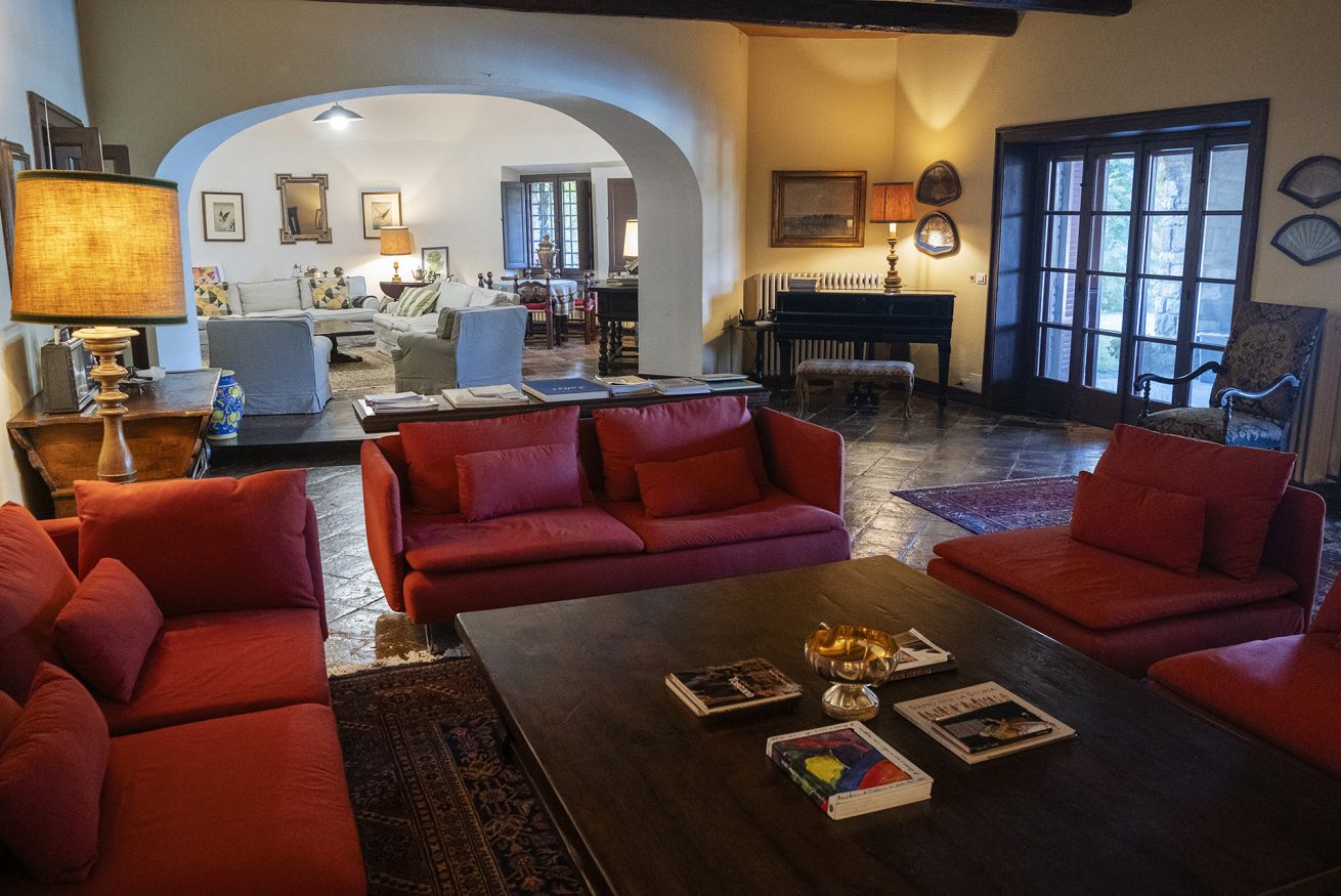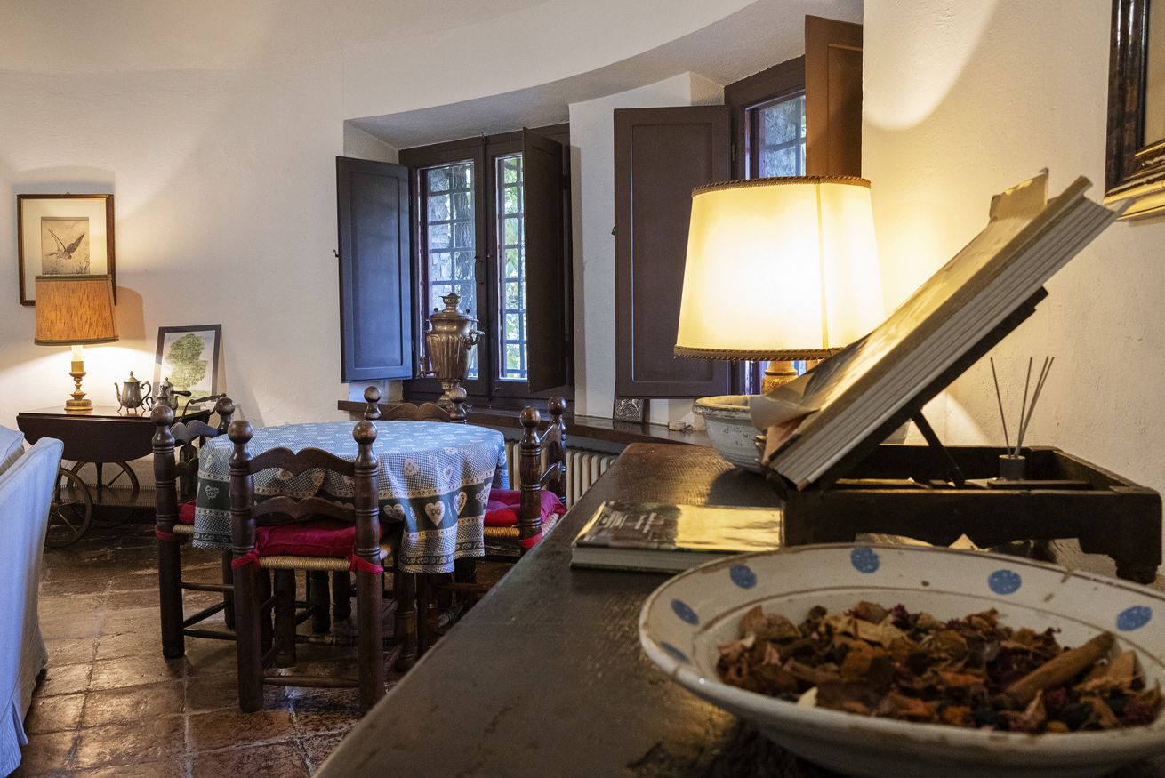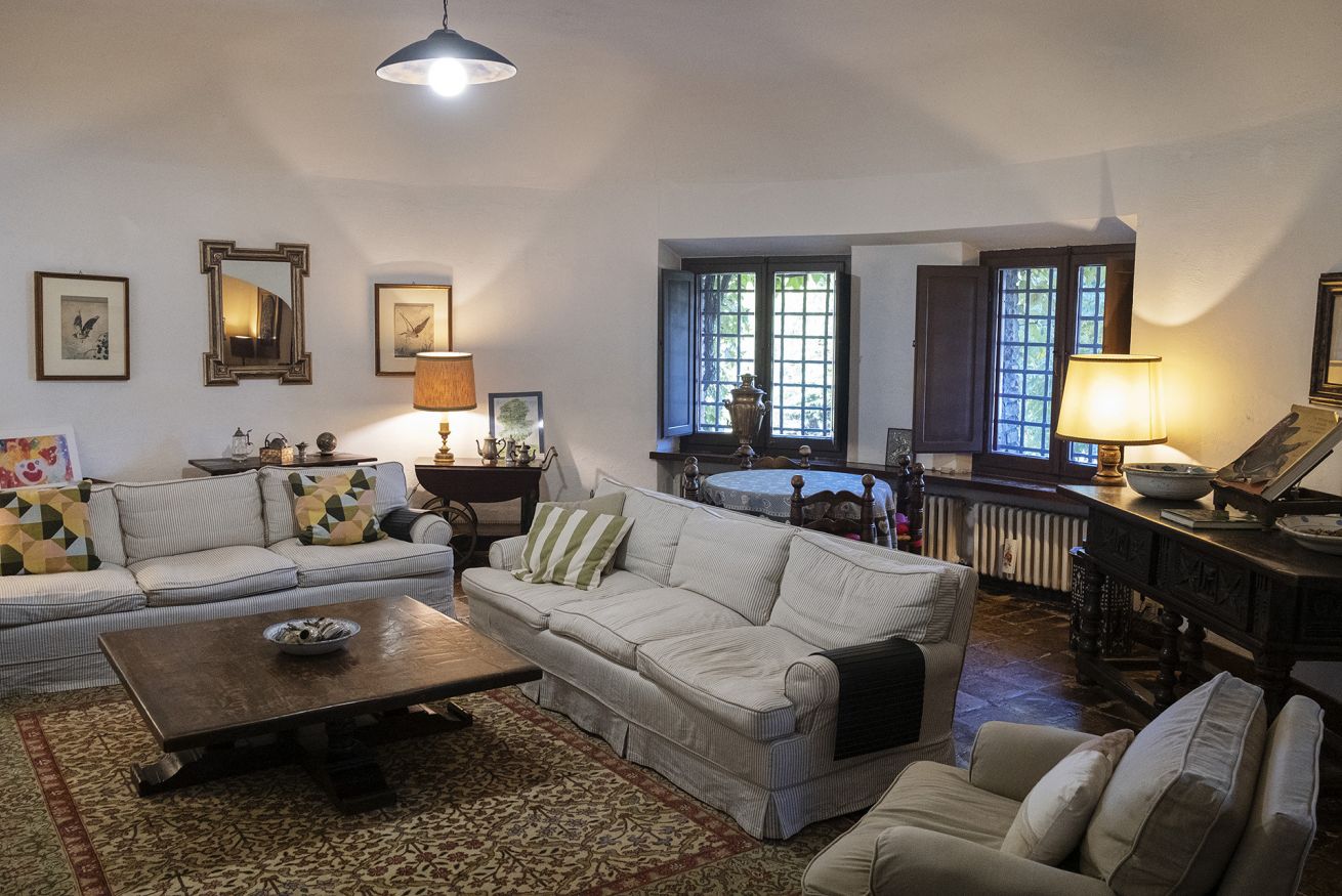 Nel corpo principale storico, al piano terra si sviluppa la luminosa zona giorno, con cucina attrezzata, doppio salone con camino e pianoforte, ideale per momenti di relax e convivialità. Dal salone si accede direttamente al portico, che conduce alla piscina, cuore della vita all’aperto.