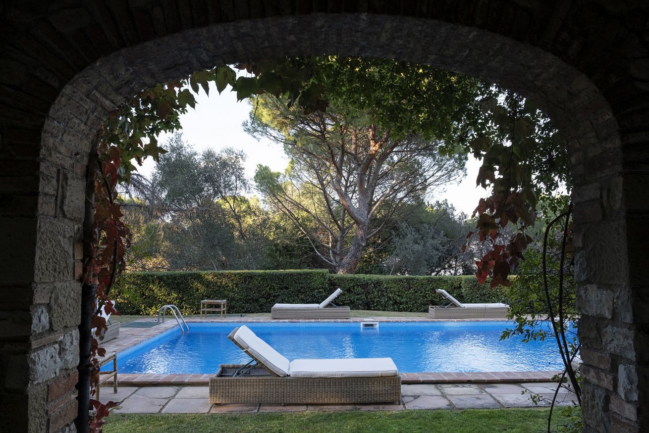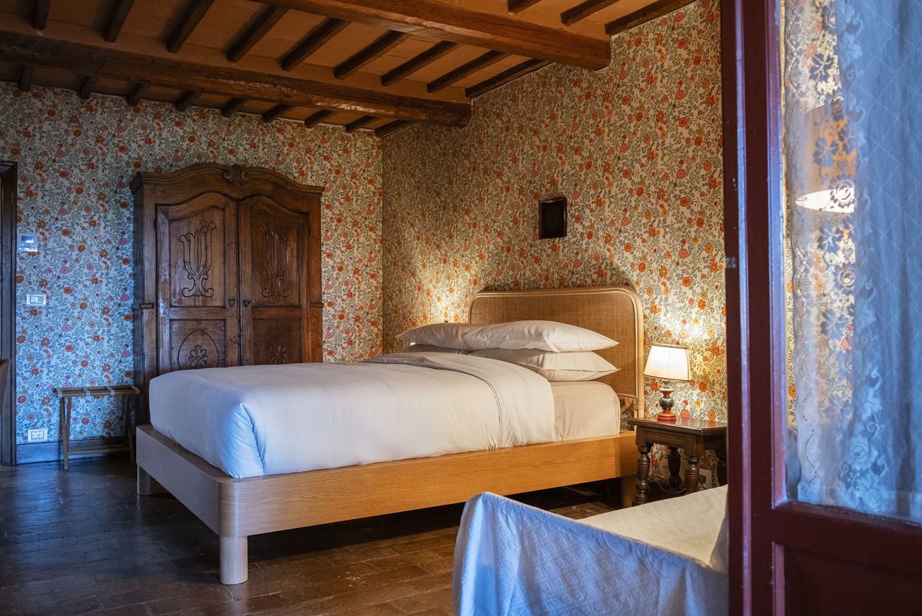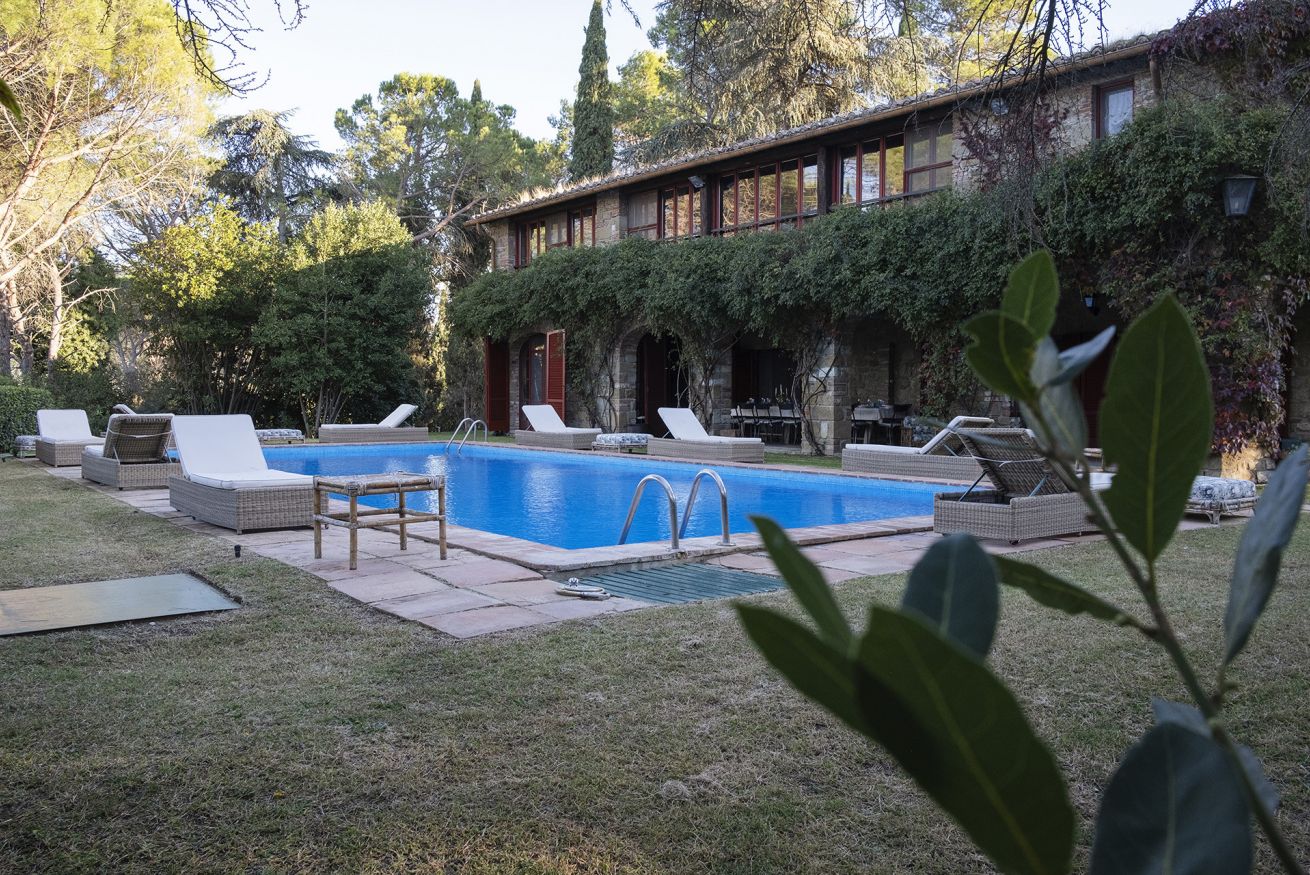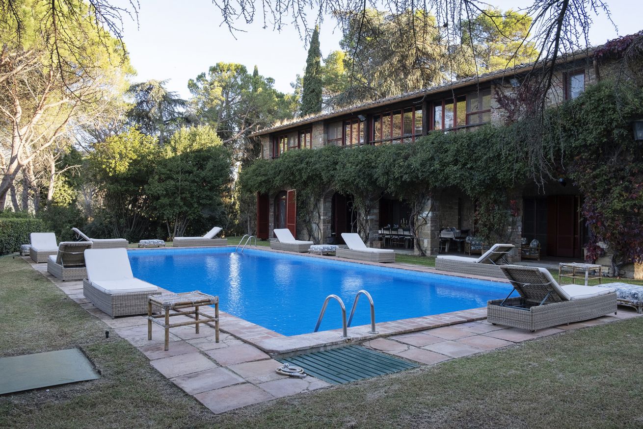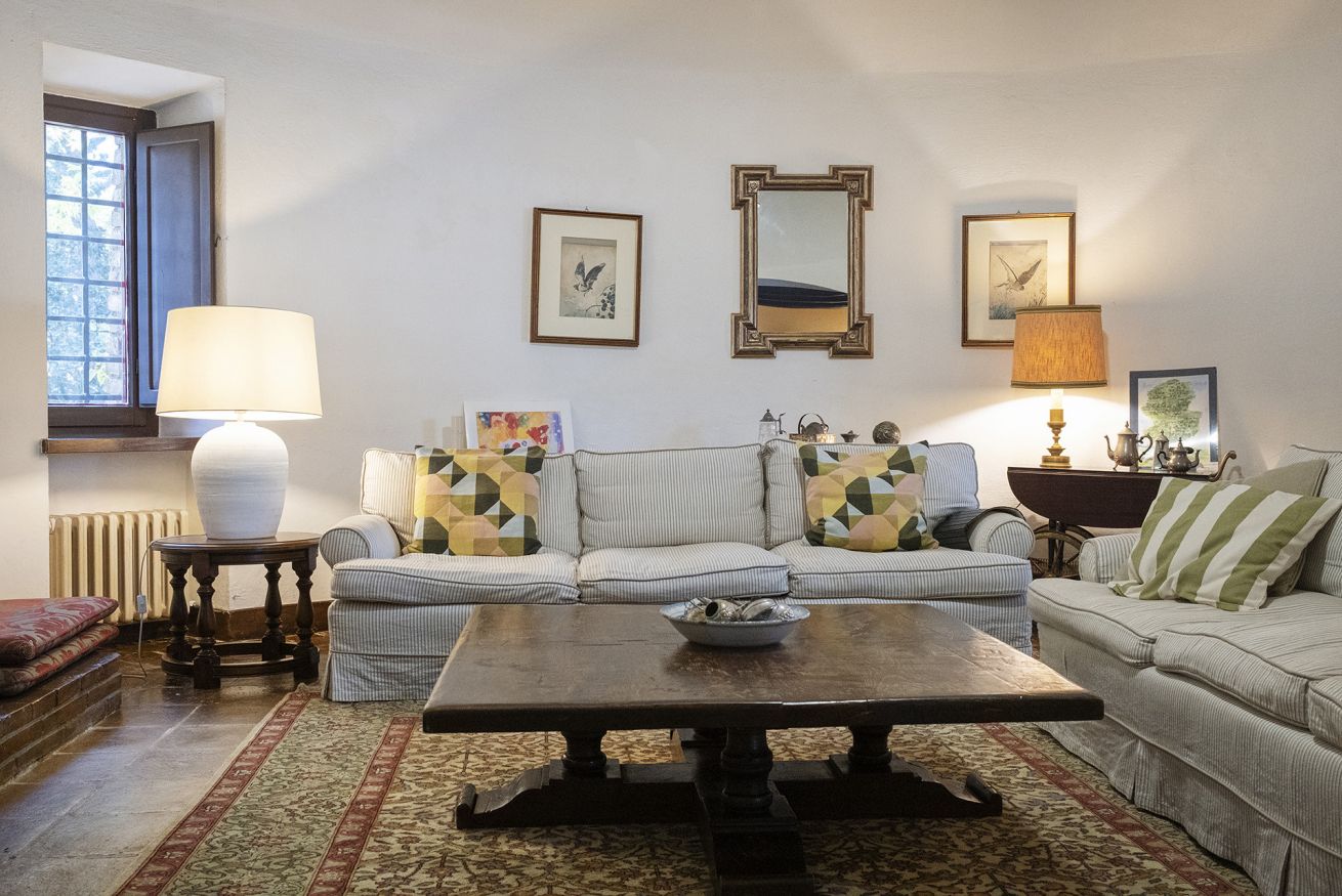 Nel corpo principale storico, al piano terra si sviluppa la luminosa zona giorno, con cucina attrezzata, doppio salone con camino e pianoforte, ideale per momenti di relax e convivialità. Dal salone si accede direttamente al portico, che conduce alla piscina, cuore della vita all’aperto.