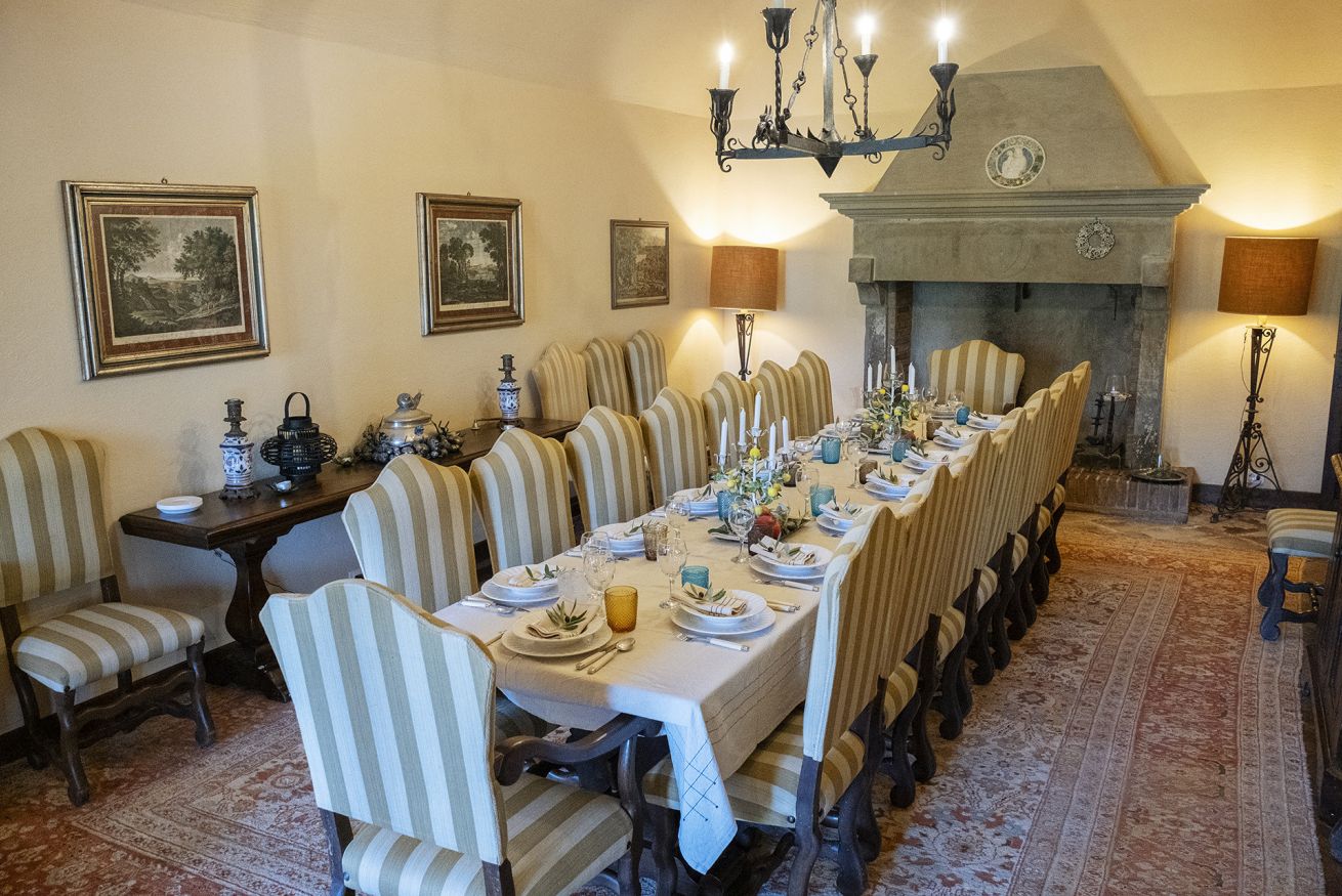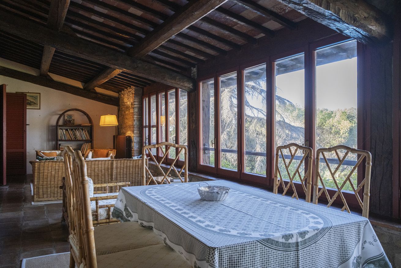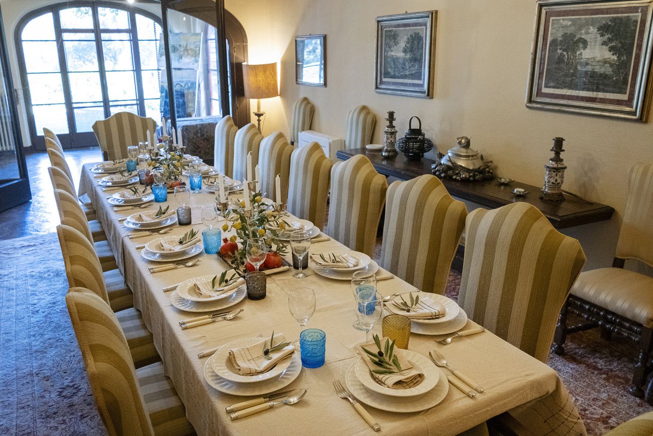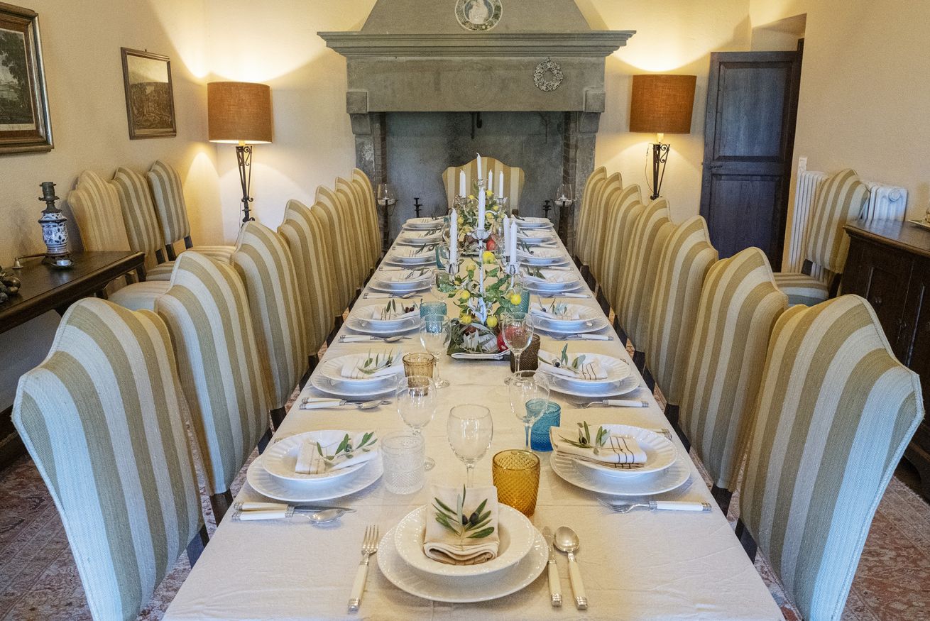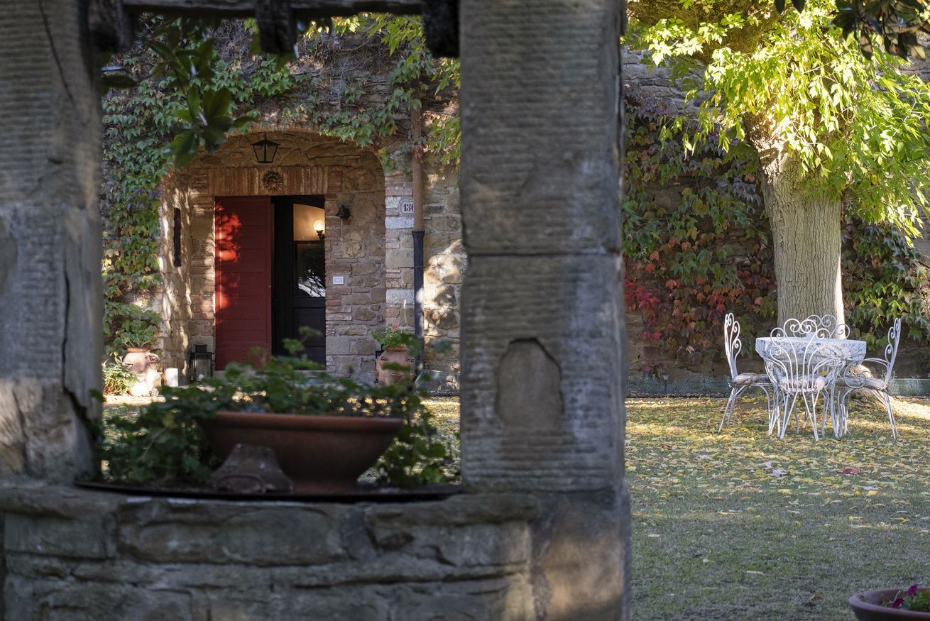 Nel corpo principale storico, al piano terra si sviluppa la luminosa zona giorno, con cucina attrezzata, doppio salone con camino e pianoforte, ideale per momenti di relax e convivialità. Dal salone si accede direttamente al portico, che conduce alla piscina, cuore della vita all’aperto.
