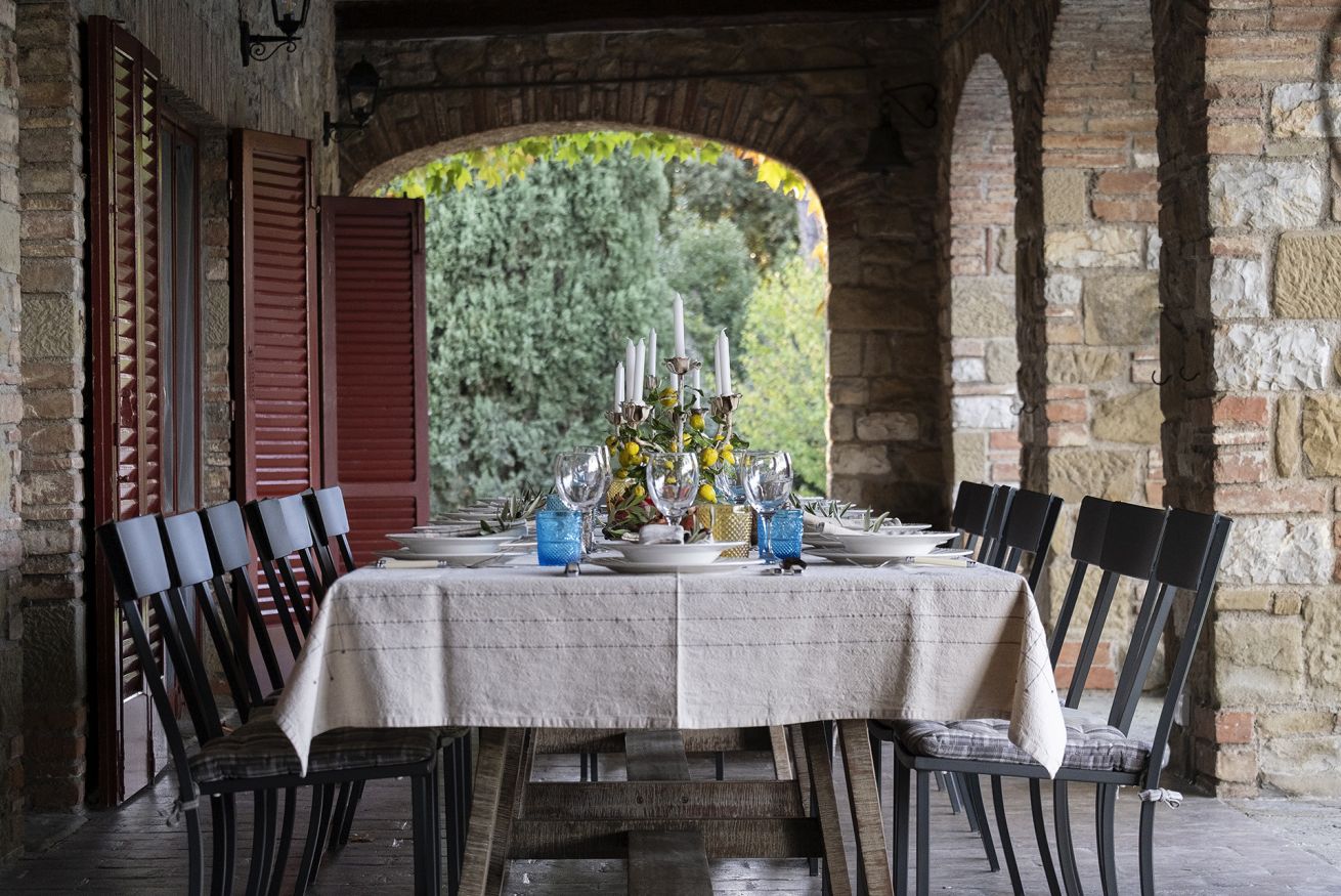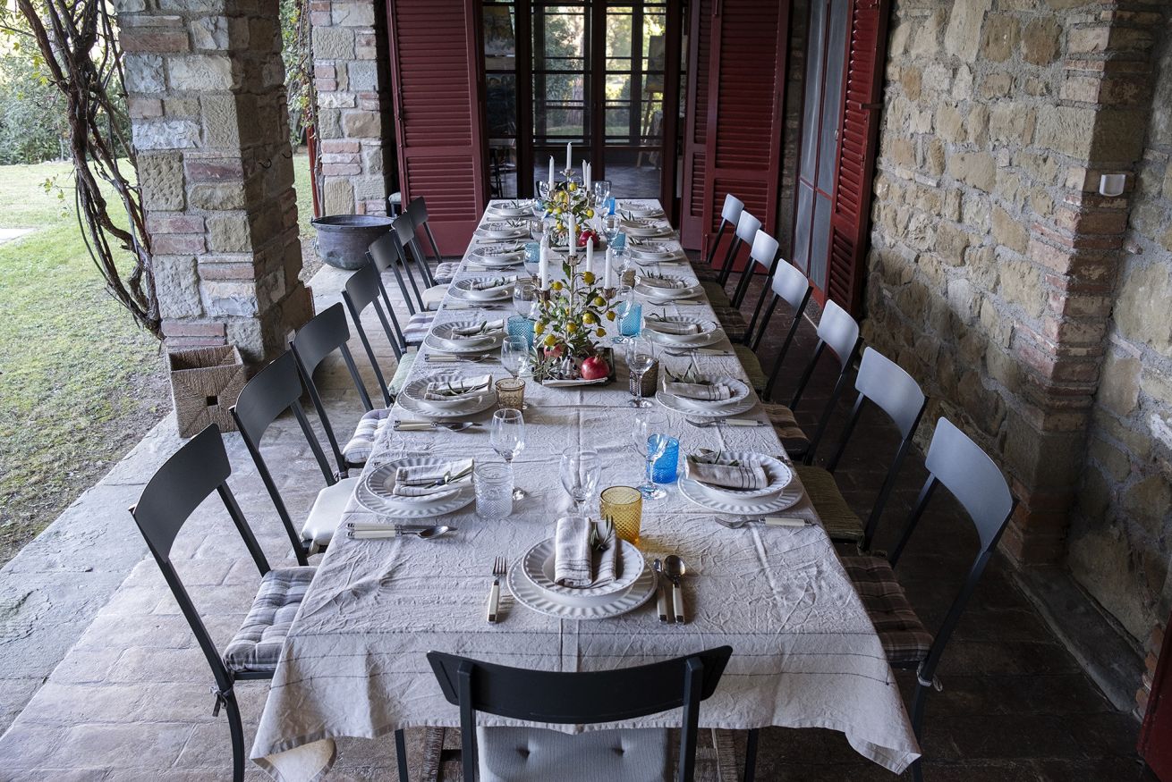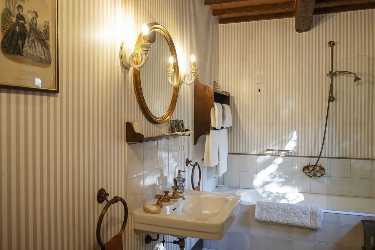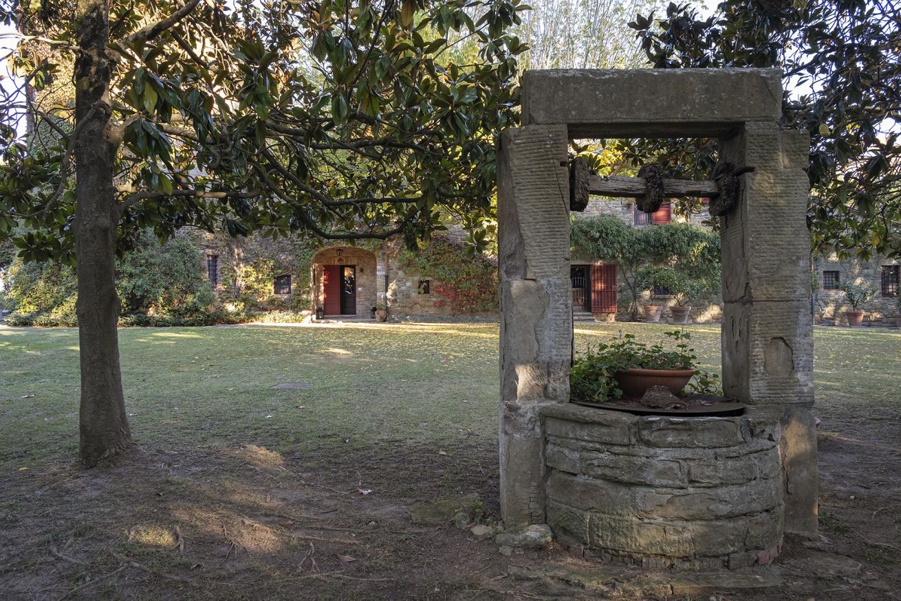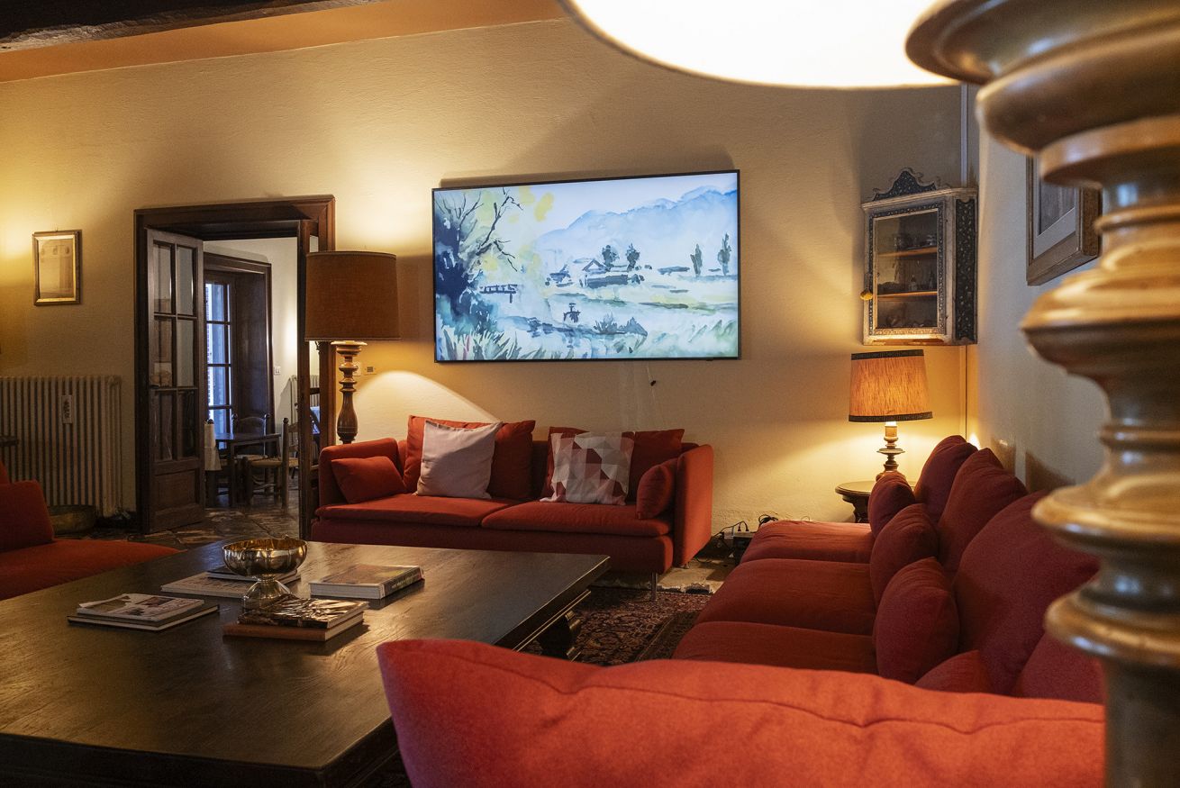 Nel corpo principale storico, al piano terra si sviluppa la luminosa zona giorno, con cucina attrezzata, doppio salone con camino e pianoforte, ideale per momenti di relax e convivialità. Dal salone si accede direttamente al portico, che conduce alla piscina, cuore della vita all’aperto.